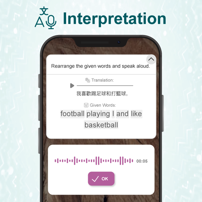 Sharpen comprehension and recall by interpreting translated content, and speaking it aloud for pronunciation rating.